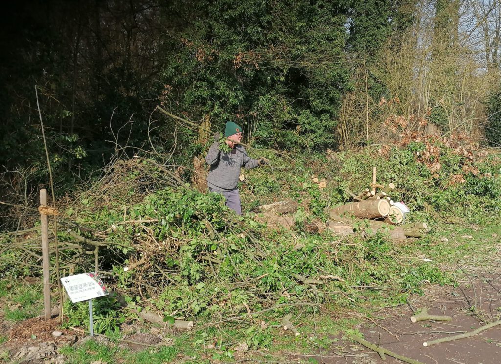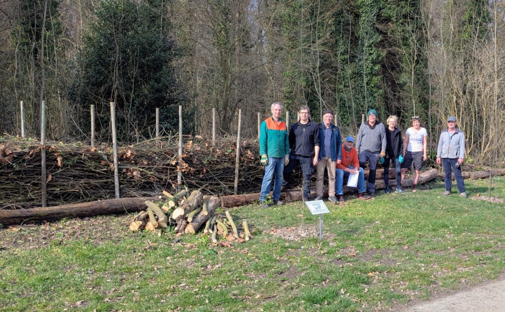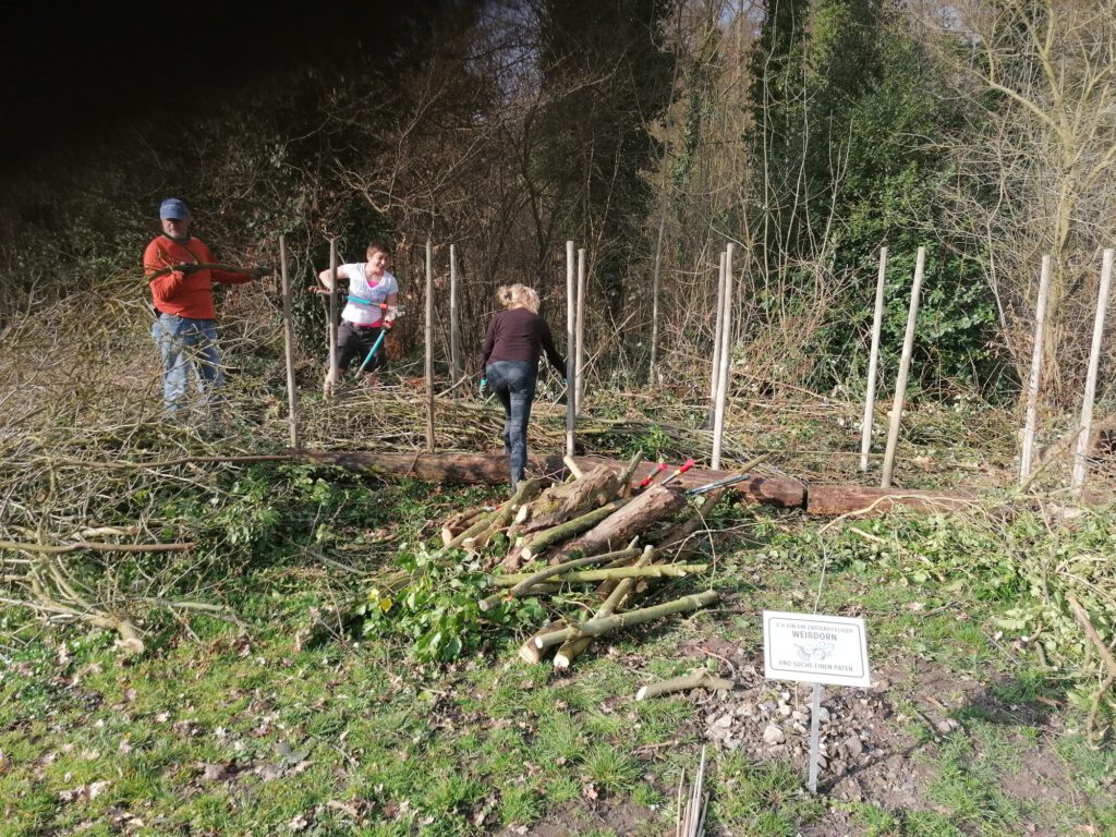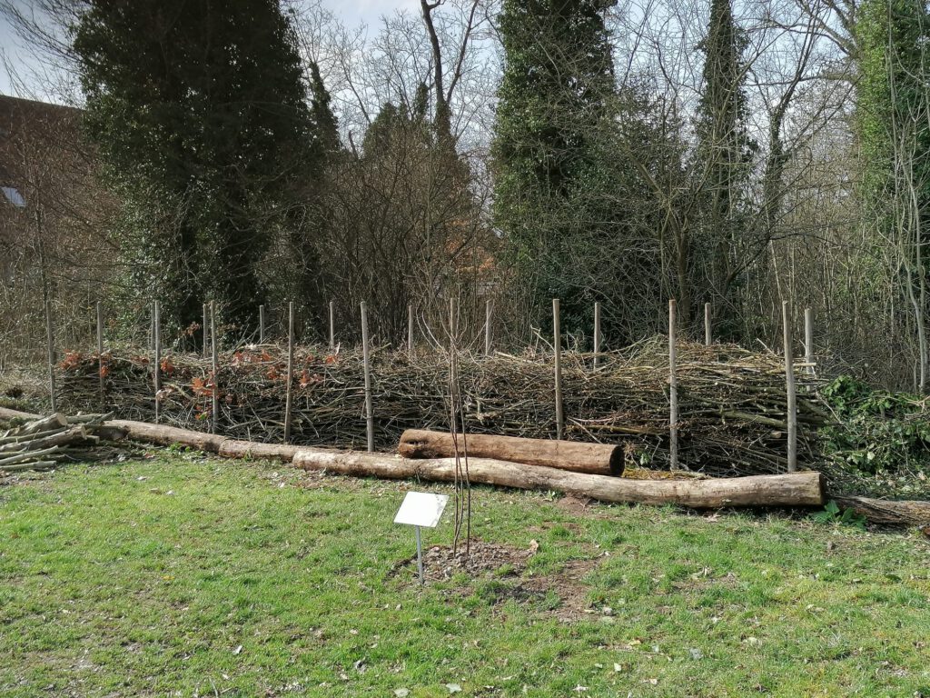 Im Rahmen unseres ersten Arbeitseinsatzes im Jahr 2026 hat der Förderverein eine Benjeshecke im vorderen Teil des Baum- und Strauchlehrpfads errichtet. Sie besteht aus aufgeschichteten Ästen und Zweigen und bietet Lebensraum und Schutz für zahlreiche Tiere. Damit wird die biologische Vielfalt gefördert und sie wertet auch optisch den Lehrpfad auf.